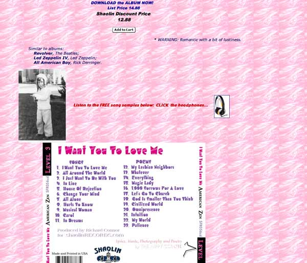 Shaolin Records is currently creating a one-page website for each album it releases that includes all the individual songs and poems for downloading or the entire album with the songs numbered in proper order...