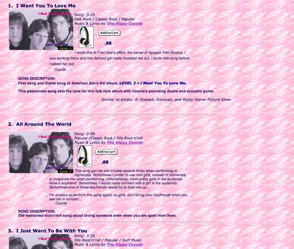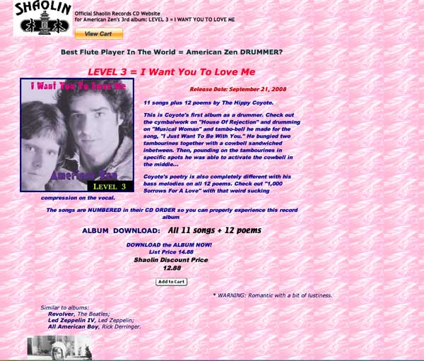 Digital music is instantly available after purchasing from Shaolin Communications. A link is provided to download the song, songs, or album from a secure server of PayLoadz and PayPal. This has worked well since 1993.